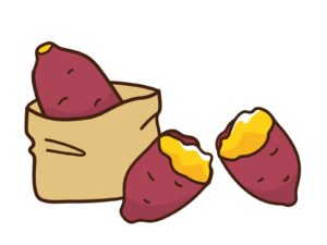 焼き芋を冷やすとデンプンの一部がレジスタントスターチ(難消化性でんぷん)に変化しGI値が下がり、血糖値の急上昇を防ぎます。